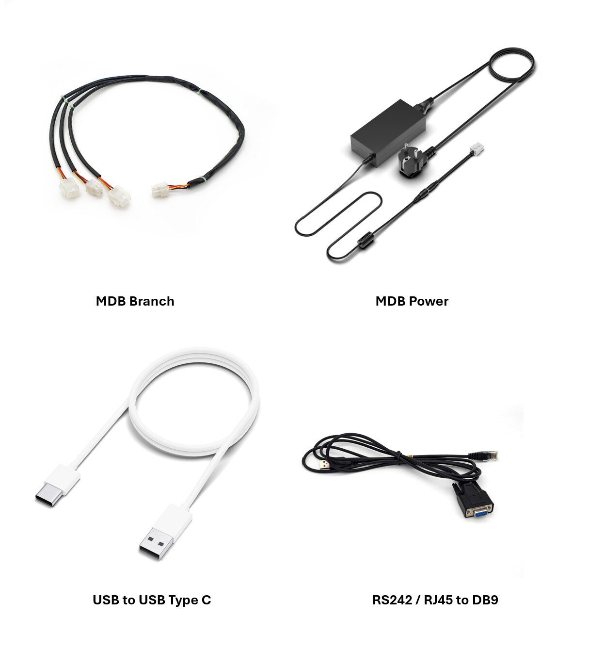 The package includes 3 cables (power, USB to Type C and MDB Branch).