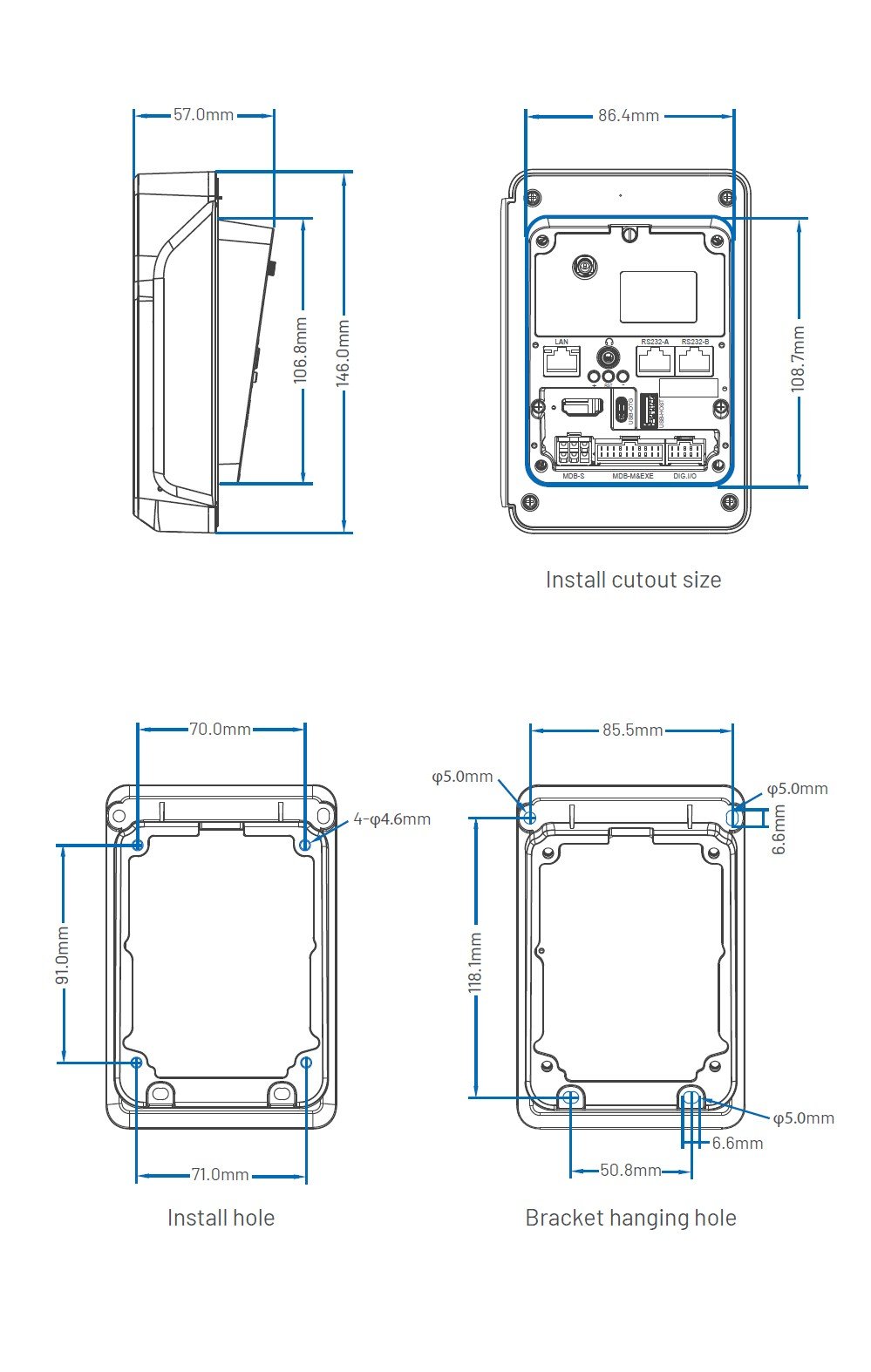 RJ45, RS232, USB Type C and MDB ports.
