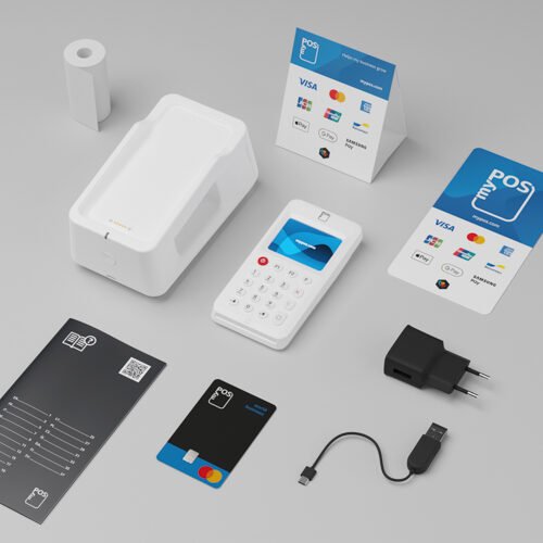 myPOS Go 2 package with the magnetic charging and printing base so you can charge the terminal and print receipts on the go.
